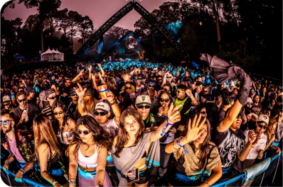 • Up Close and Personal: Dedicated front-of-stage viewing areas with complimentary beverages at the 3 main stages (Lands End, Twin Peaks, and Sutro).