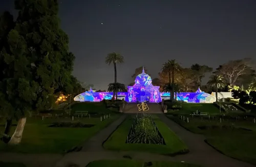 The Conservatory of Flowers is a large botanical greenhouse in Golden Gate Park, constructed in 1878. The Conservatory is a spectacular living museum of rare and beautiful tropical plants including palms, orchids, bromeliads, carnivorous plants, and much more. It is the oldest building in Golden Gate Park and the oldest municipal wooden conservatory remaining in the United States.